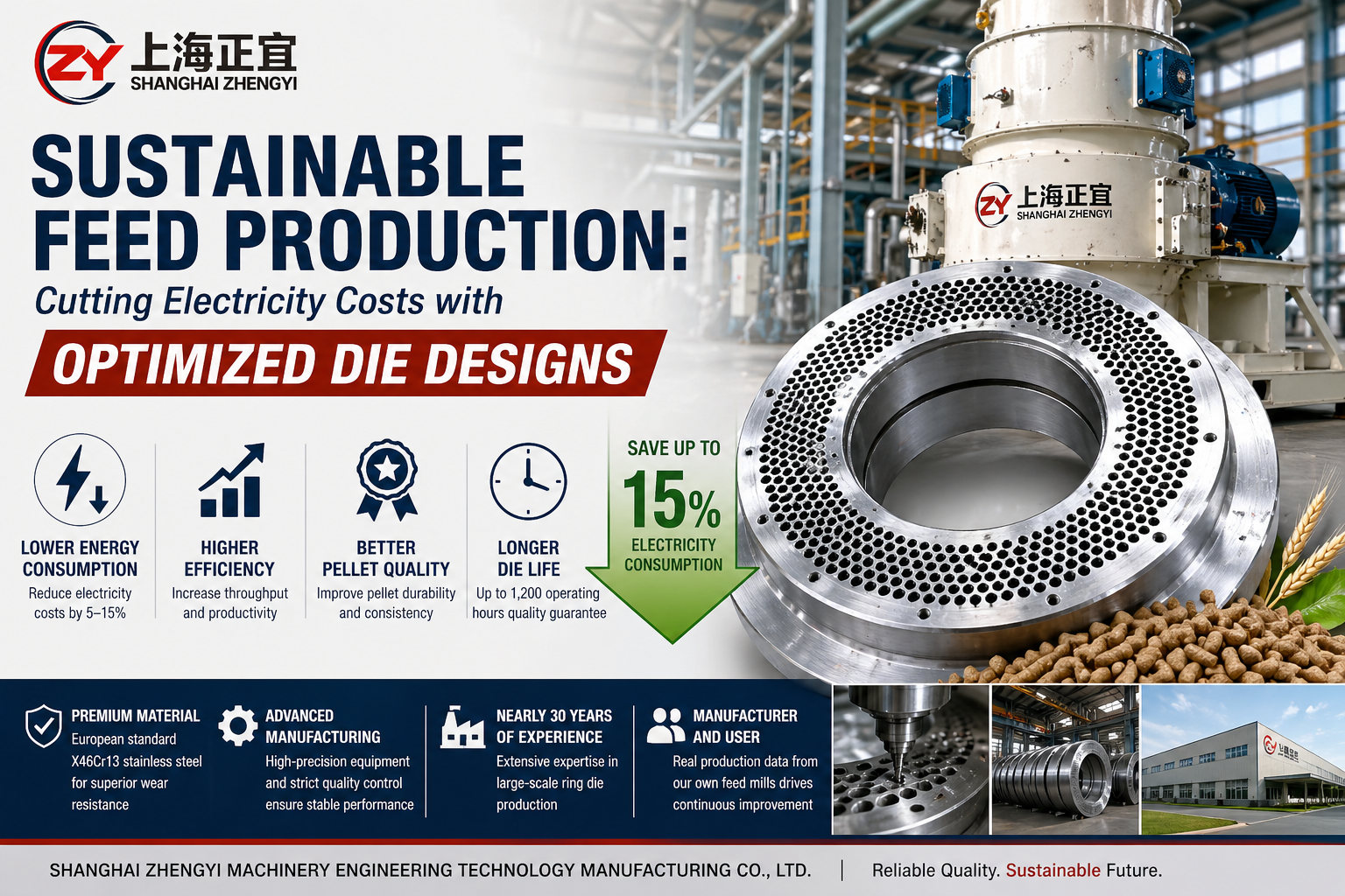 With nearly 30 years of manufacturing experience, Shanghai Zhengyi Machinery Engineering Technology Manufacturing Co., Ltd. delivers high-performance ring dies designed for efficiency, durability, and sustainability.